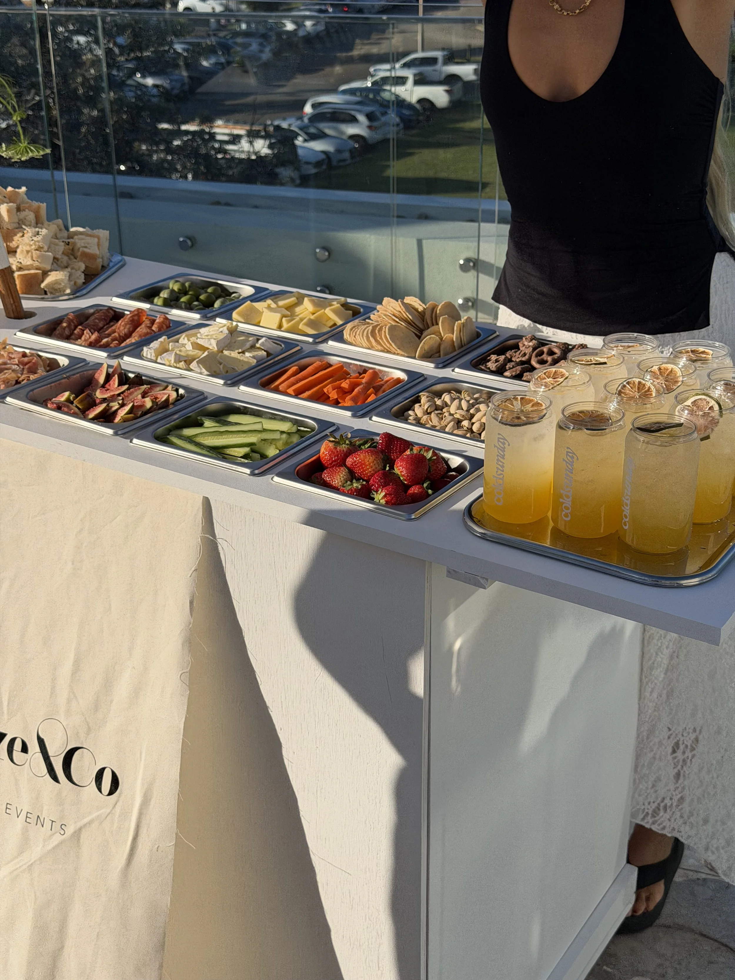 Our catering cart is designed to bring flexibility and style to any event. Fully customisable, it can be made to suit your needs whether that’s a beautifully arranged antipasto selection, a fresh and inviting breakfast spread, or an indulgent dessert display.